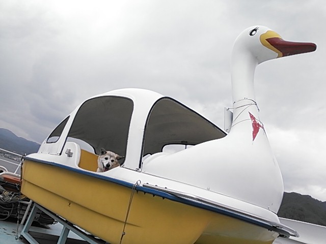 諏訪湖の遊覧船に乗ったり(ダメもとで聞いたらワンコOKだった!)