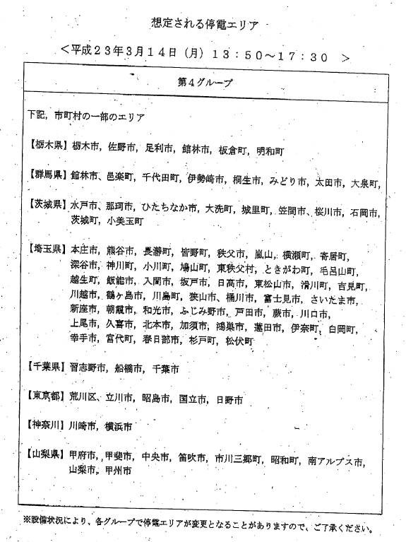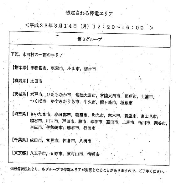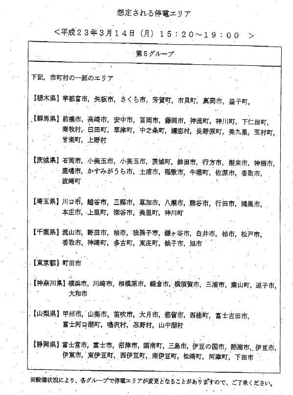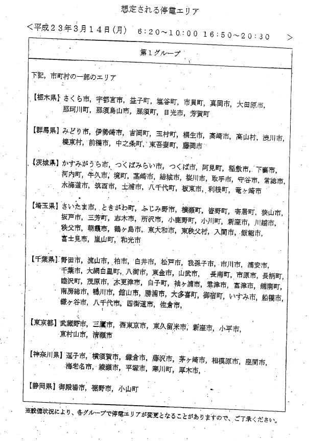 一応TV見逃した方のために停電スケジュールを。