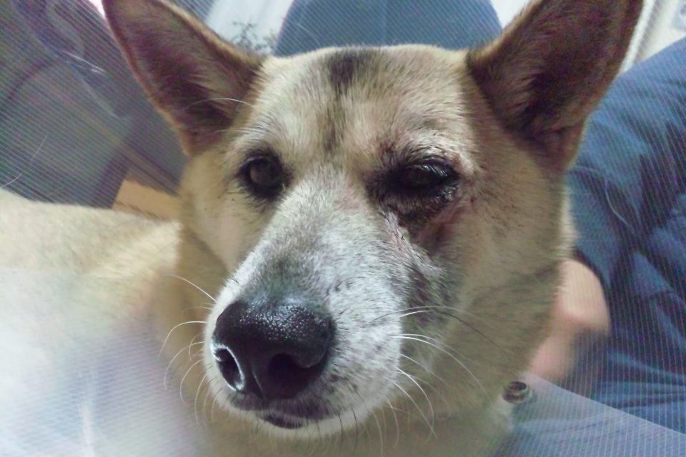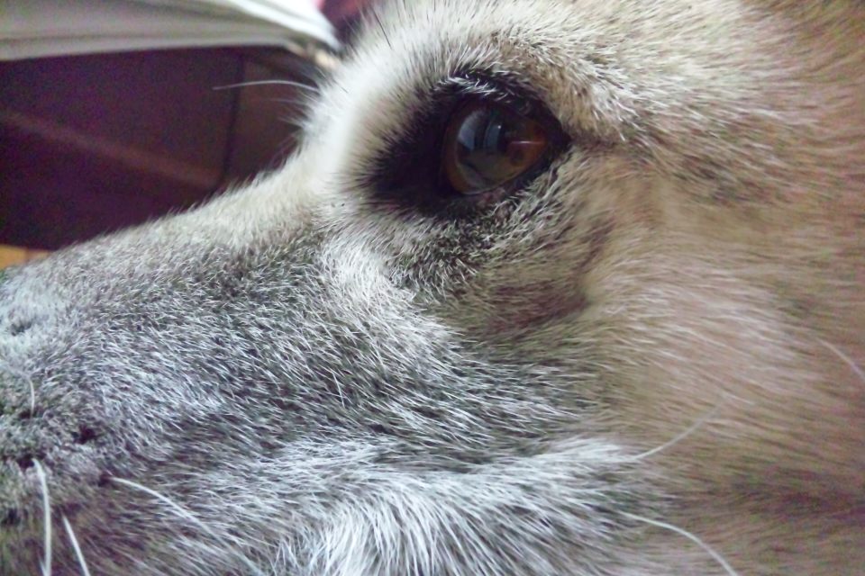 手術当日のあの痛々しさがだいぶ無くなり毛が無いという違和感だけになったそらのおめめ。