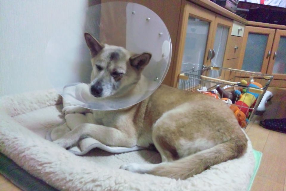 残る心配事は縫った部分を後ろ足で掻かないように見張ってるだけ。