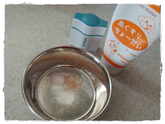 また薬が増えてしまいしかも昨日の朝にパンとペーストに挟み込むのがダメになってしまったので先生にどう飲ませたら良いか相談。