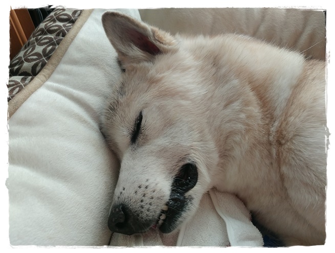 呼吸も荒くて苦しそうな時もあったけど意識はハッキリしていたのでたまにワタシは旦那にチョイチョイと前足で「ワタシは大丈夫」と言わんばかりに手や腕などに(一緒に横になっていたので)触れてくる。