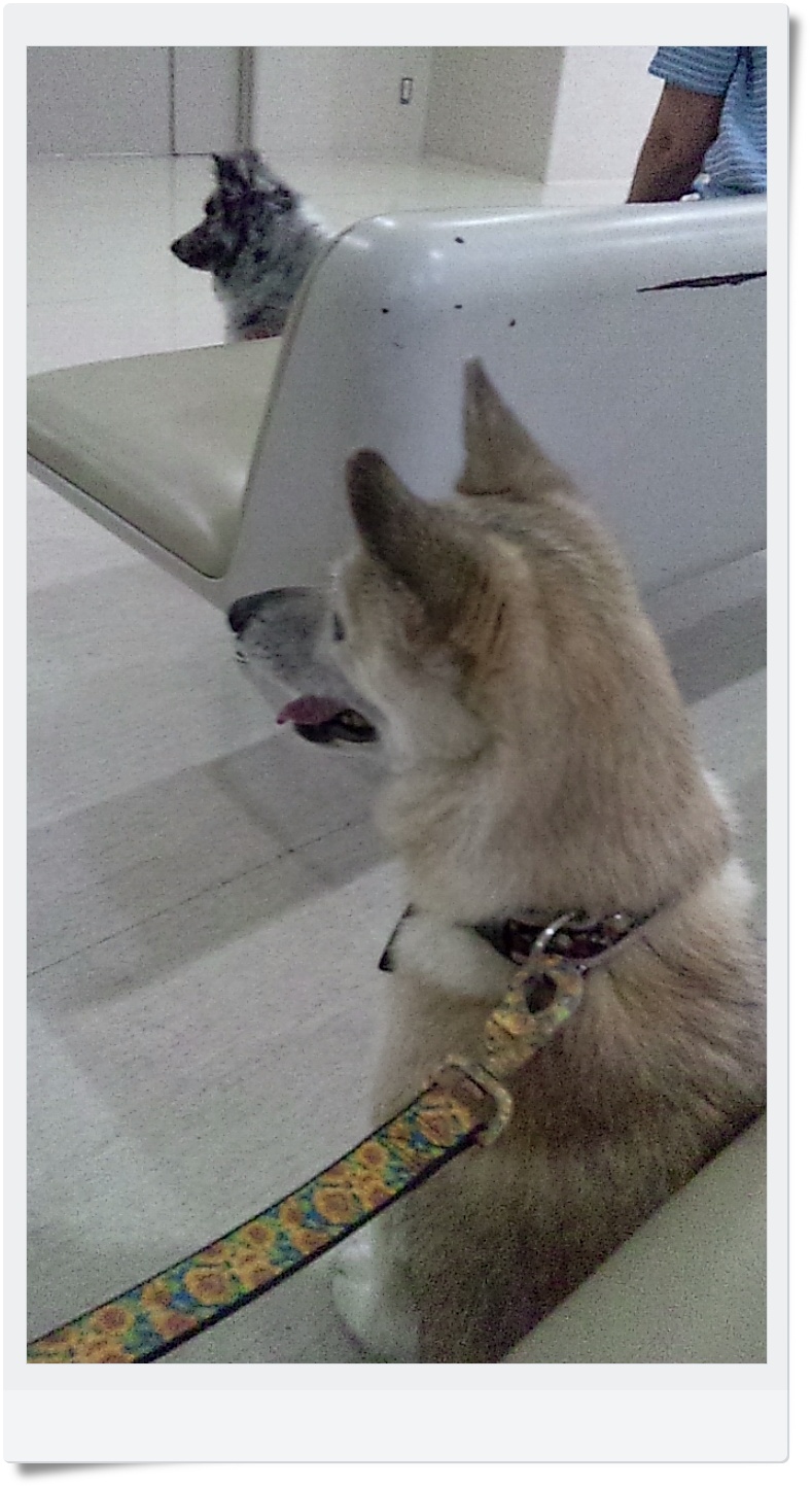 それでまぁほぼ時間通りに呼ばれ、1ヶ月半のそらの状況を説明し(説明するほどじゃないんだけどね)先生にそらを渡して検査待ち。