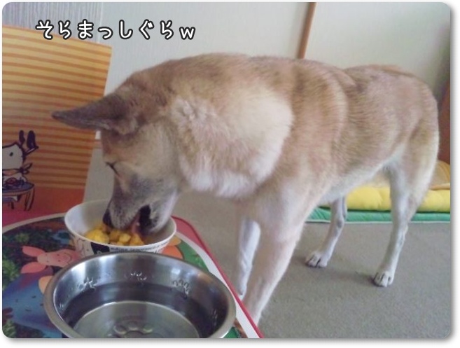 こりゃ食いつきわるいかも!失敗した~(汗)と思ってたんだけど、そらの反応は上々!