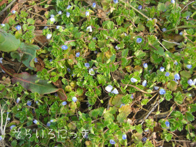 畑の畦道にはオオイヌノフグリが咲き始め・・・
