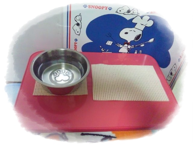 ちなみに水皿の下に敷いてるのは同じくシリコン製の瓶とかの蓋を開けるヤツ。(何故かウチにはこの類のが沢山あったので1つそら用にしてみたw)