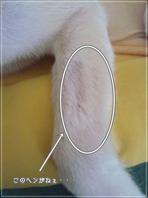 右前足のマルの部分がね、ちょいと薄くなってしまったの。。