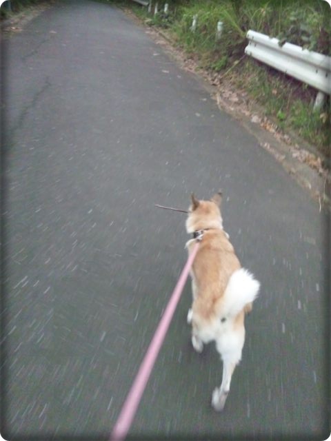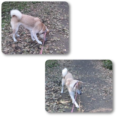 そらが枝を咥えてるのを忘れてリードを縮めてしまうと枝がワタシの足にガシガシ当たって痛いのよ~~~(TOT)