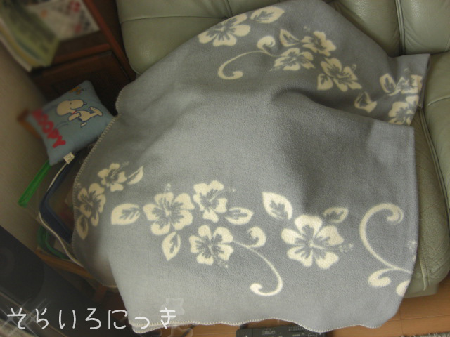部屋の中は良い日差しも入っていて暖房をつけなくても暖かいのに震えている子がいたのでフリースをかけてみました(笑)