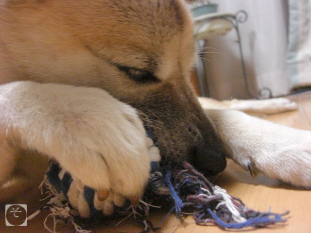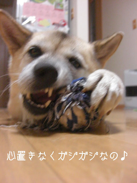 ホントはレトリーブしてもらいたいみたいなんだけど、このオモチャはロープだし家が壊れるので持ってくるならラッテクストーイにしてね(爆)