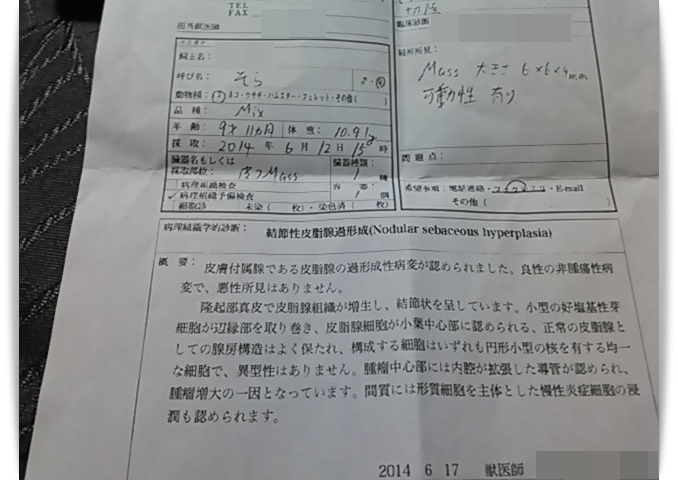 ↑検査結果。