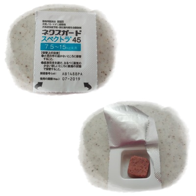 その為早めにノミ・ダニ駆除薬を飲ませたくて今回からそれとフィラリアが1錠で予防できるネクスガード スペクトラに。