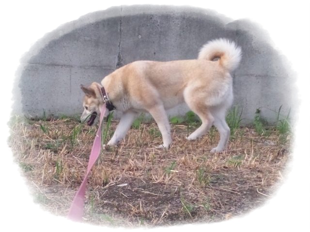 土手の雑草が刈られていたので草地を歩かせていたんだけどトボトボ歩き。
