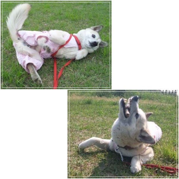 翌日(4/28)の朝の散歩では久々の芝生でゴロゴロを堪能中(爆)