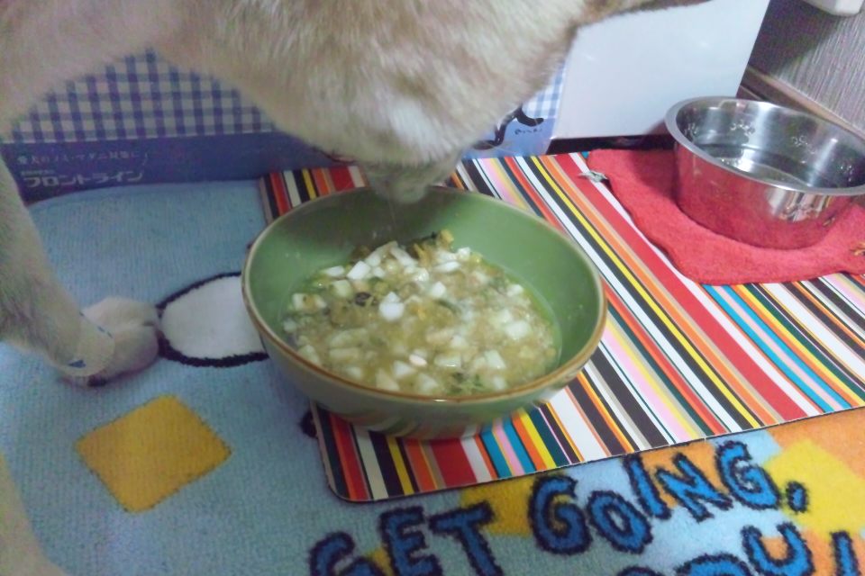 絶食解禁後から食欲はあり、昨日の夜から手作り食+トッピング程度のドライフードもむしゃむしゃ食べるようになりました。
