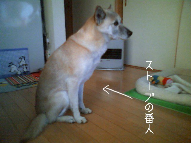 写真撮るときに起き上がってしまったんだけど撮る前はファンヒーターのほうを向きフセした状態でぬくぬくしてましたよ( ̄m ̄〃